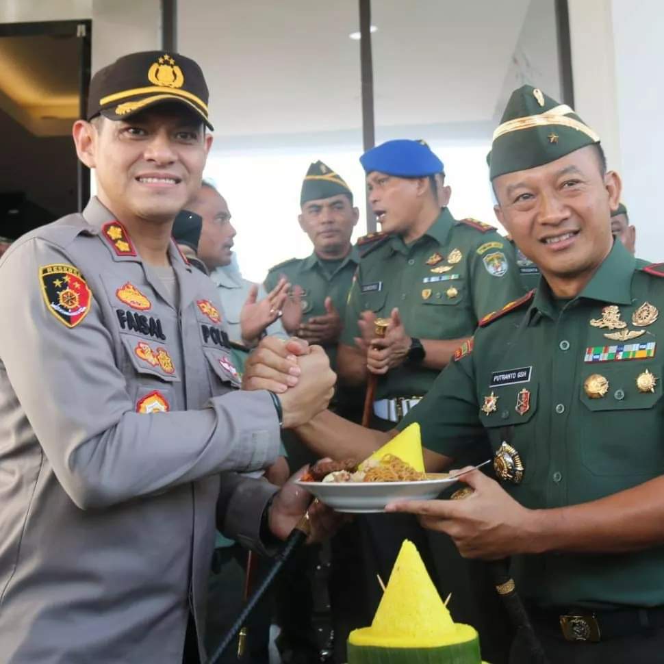 Rombongan Danrem 052/wkr diterima langsung Kapolres Tangsel AKBP Faizal Febrianto, S.I.K M.Si.Dalam kesempatan tersebut Danrem 052/wkr memberikan ucapan selamat HUT Bhayangkara ke 77 kepada Kapolres Tangsel dilanjut dengan penyerahan tumpeng sebagai bentuk ucapan HUT Bhayangkara ke 77. (Penrem 052/WKR)